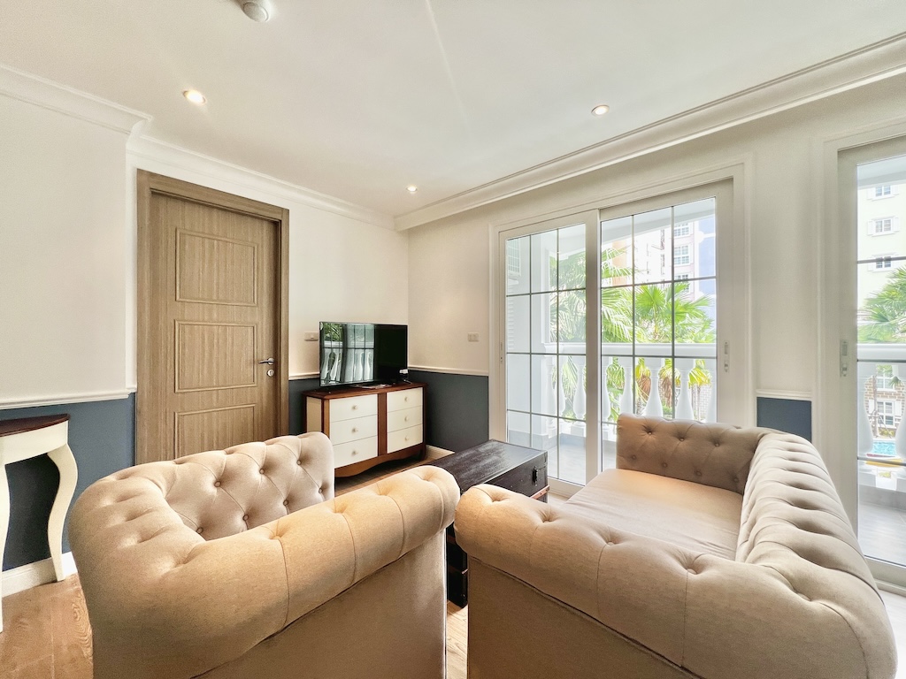 Nice Pool view fully furnished condo with 2 bedrooms, 2 bathrooms, living room and balcony, all furniture is new. Ready to move!