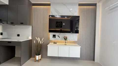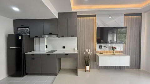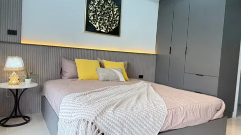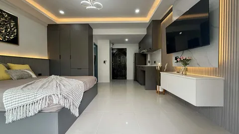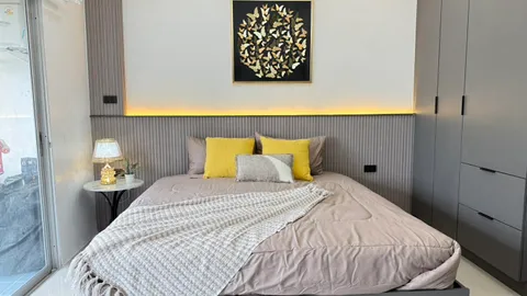 Inside, you will find neat corridors, elevators, and views of the garden or street. The overall atmosphere is simple and tropical, without the excessive luxury and futuristic elements typical of modern high-rise developments.