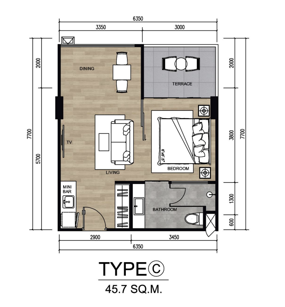 The 1-bedroom apartment with a spacious balcony, is located on the 2nd floor of the condominium Sea Heaven - phase 2.1.