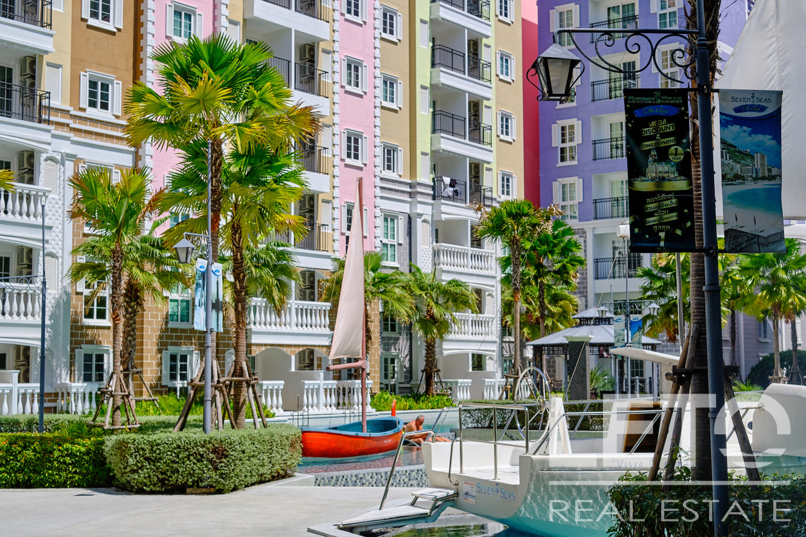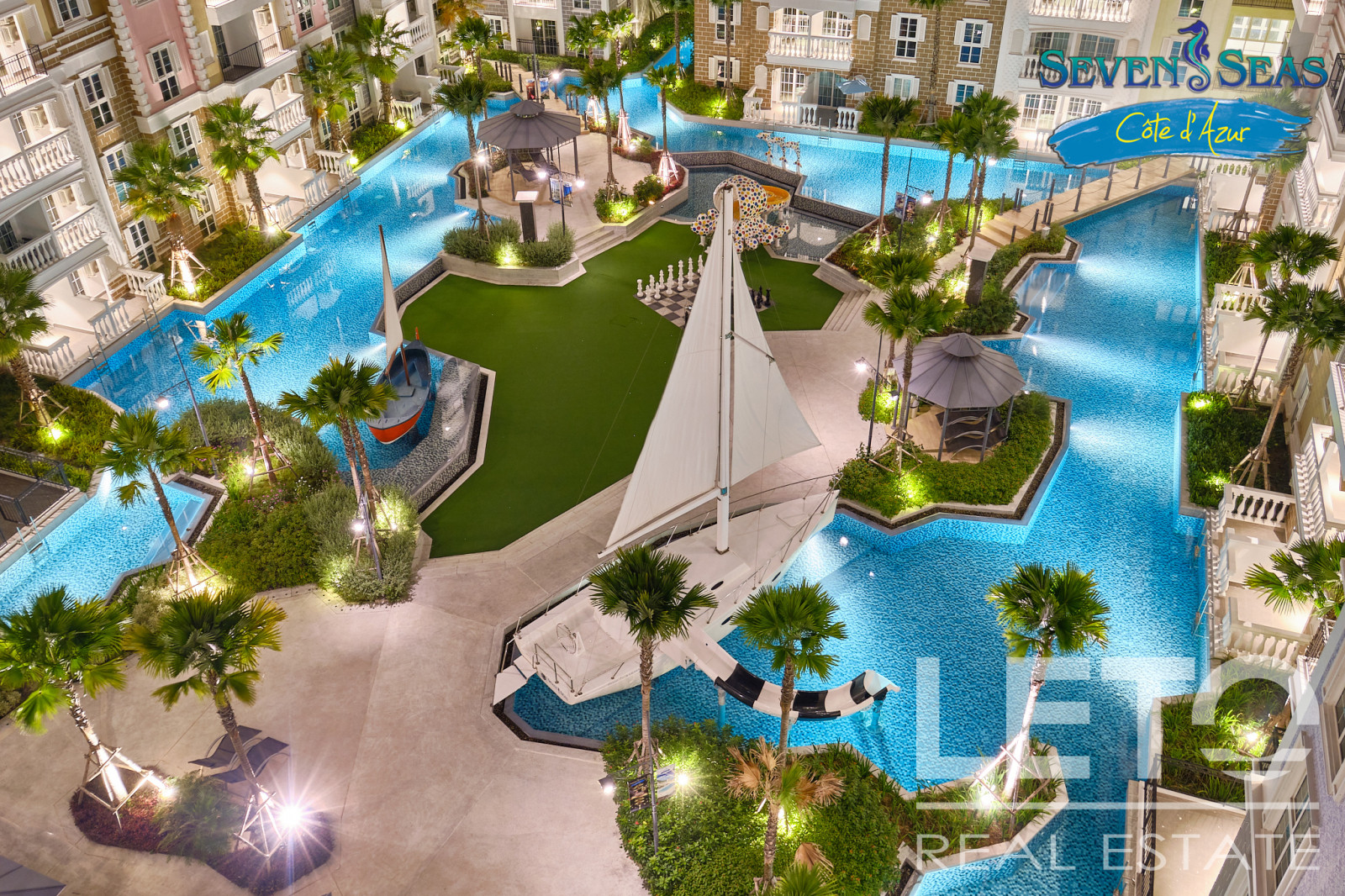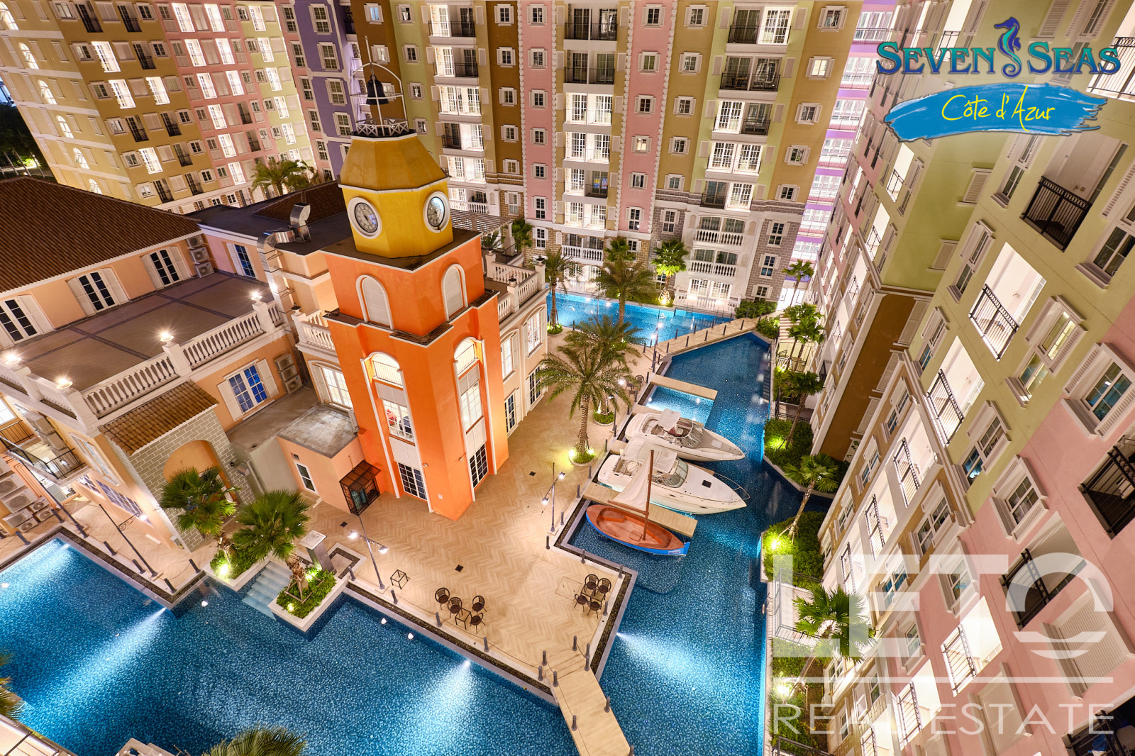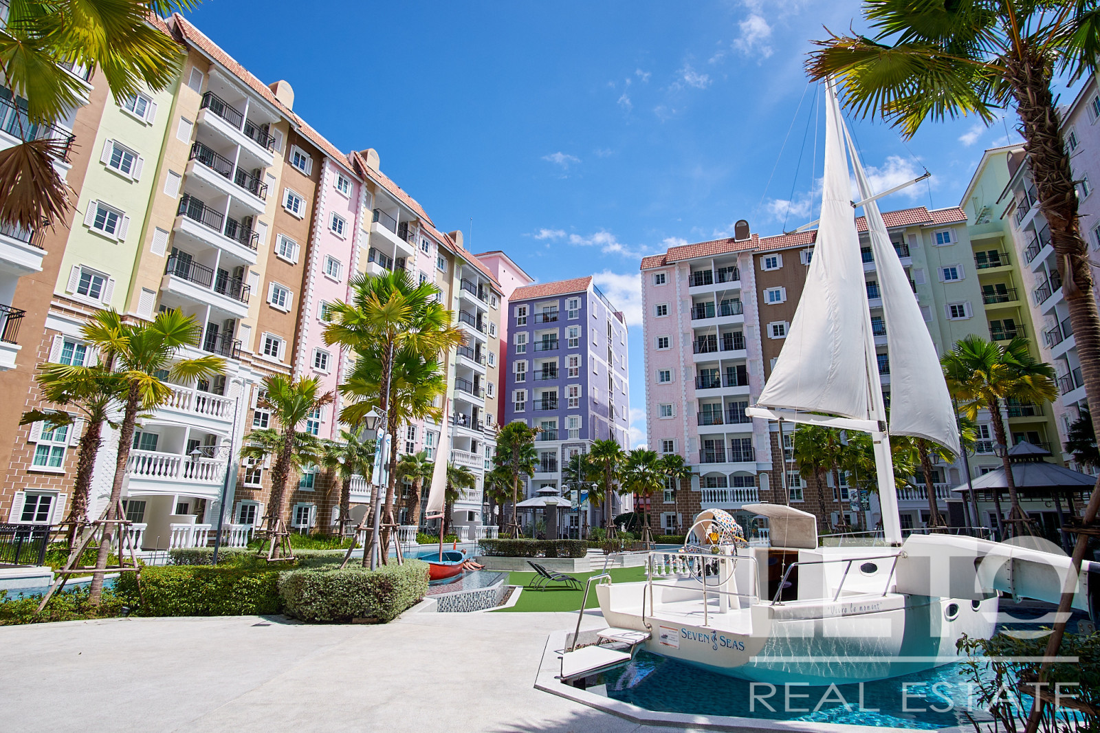 Новый резорт Seven Seas Cote d'Azur - это готовый кондоминиум от известного тайского застройщика Universal Group. Это целый город во французском стиле с богатой инфраструктурой и расположением всего в 300 м от моря на побережье Сиамского залива. Продуманный до мелочей кондоминиум класса резорт, Côte d'Azur воссоздает атмосферу самого известного и дорогого средиземноморского курорта, концепция проекта во всем: в планировке, в экстерьере зданий, в интерьерах и деталях ландшафтного дизайна и декоративных элементов инфраструктуры комплекса.