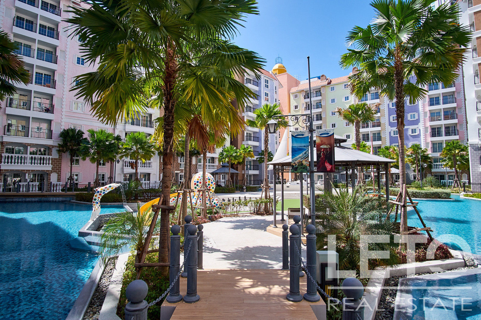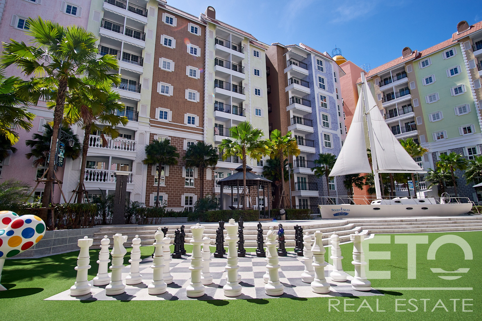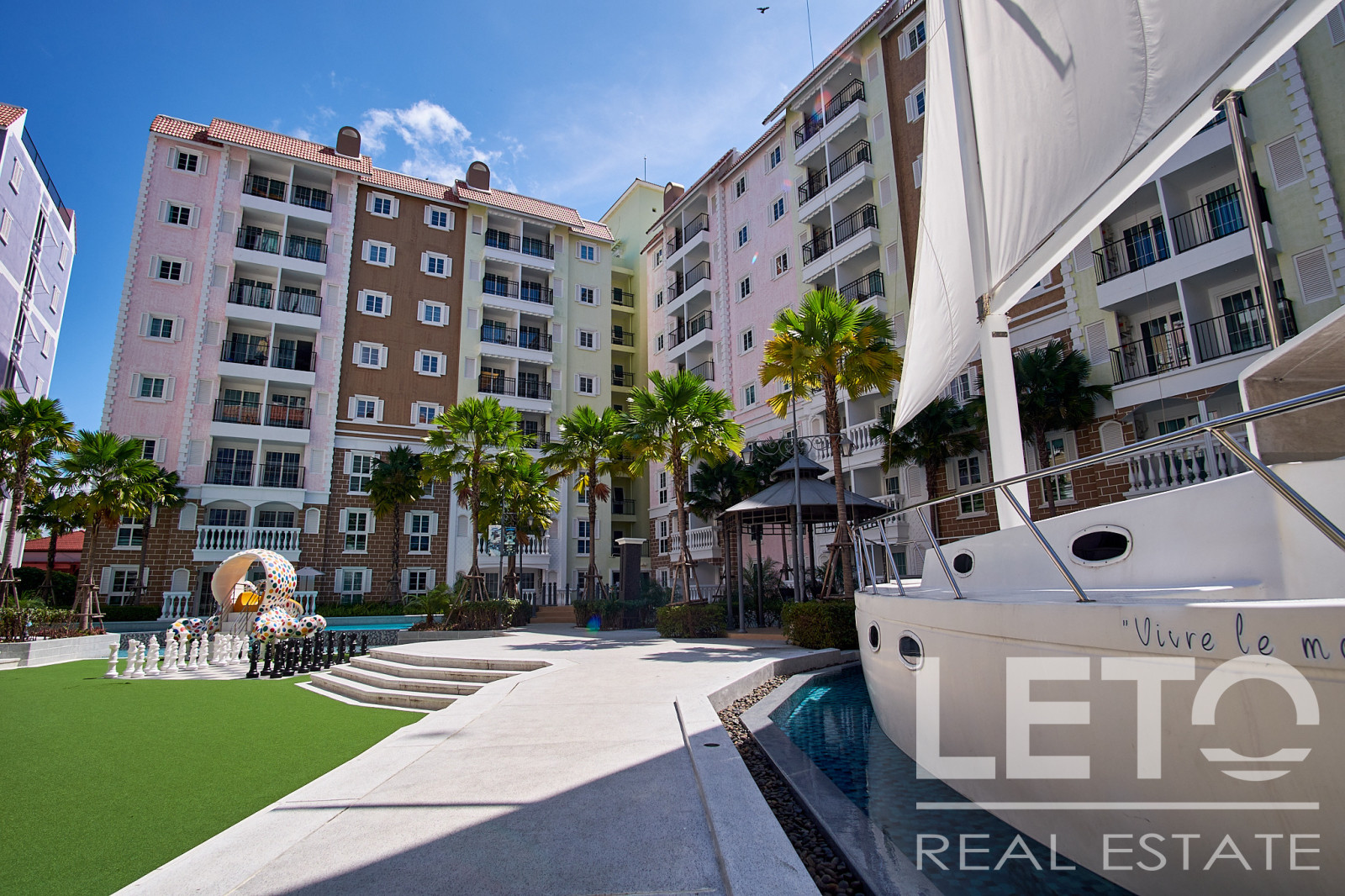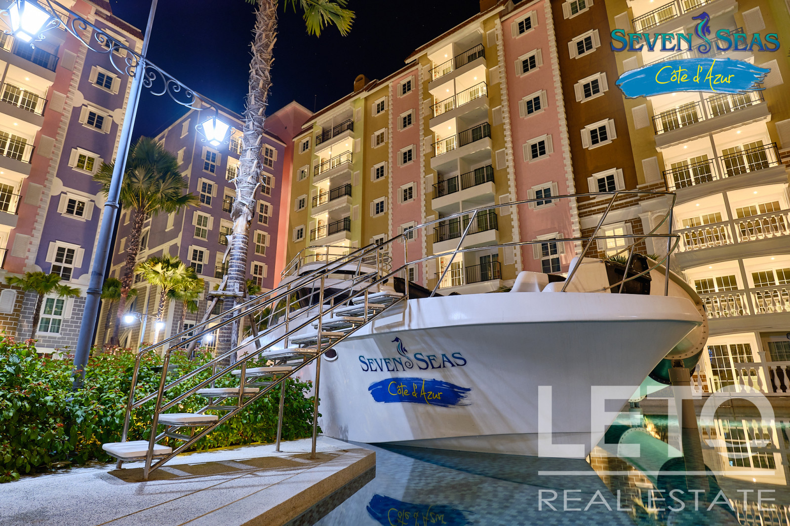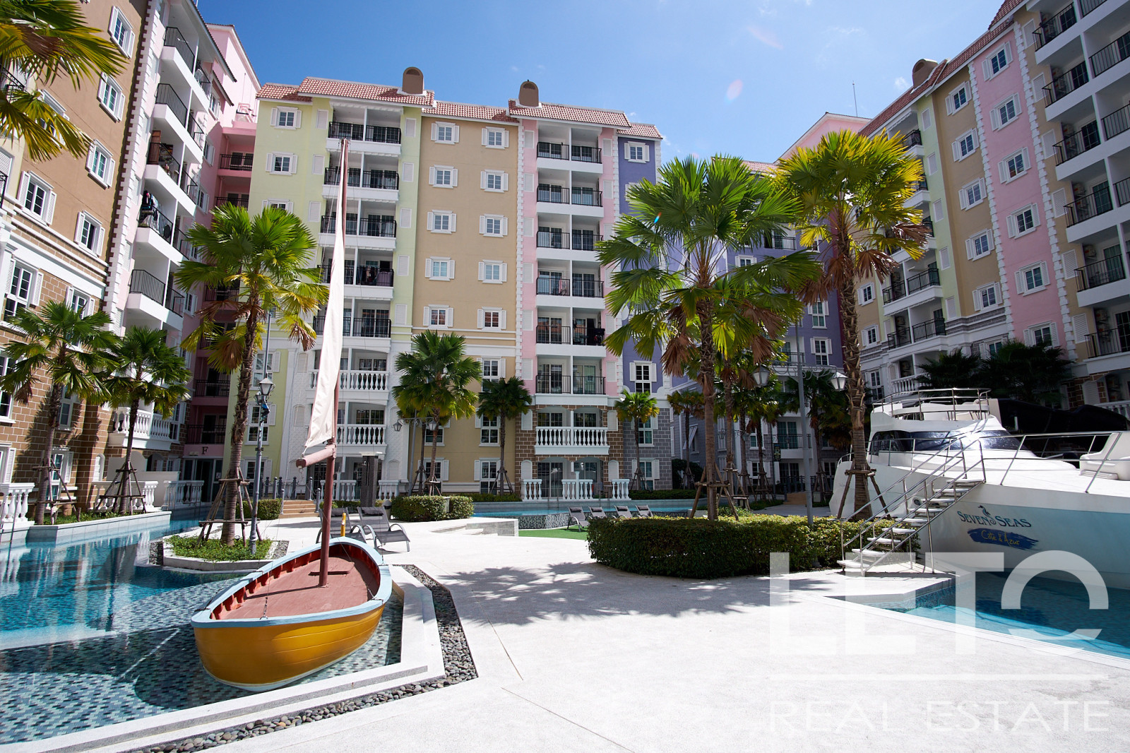 Новый резорт Seven Seas Cote d'Azur - это готовый кондоминиум от известного тайского застройщика Universal Group. Это целый город во французском стиле с богатой инфраструктурой и расположением всего в 300 м от моря на побережье Сиамского залива. Продуманный до мелочей кондоминиум класса резорт, Côte d'Azur воссоздает атмосферу самого известного и дорогого средиземноморского курорта, концепция проекта во всем: в планировке, в экстерьере зданий, в интерьерах и деталях ландшафтного дизайна и декоративных элементов инфраструктуры комплекса.