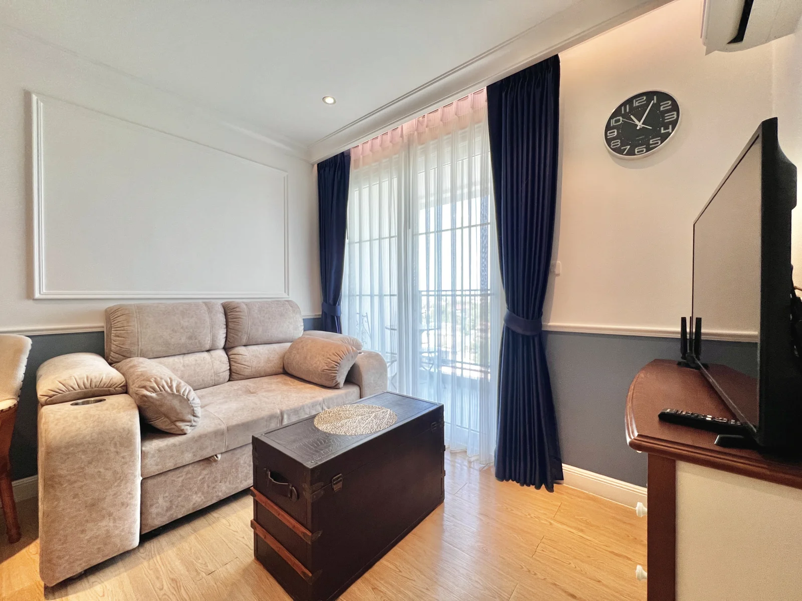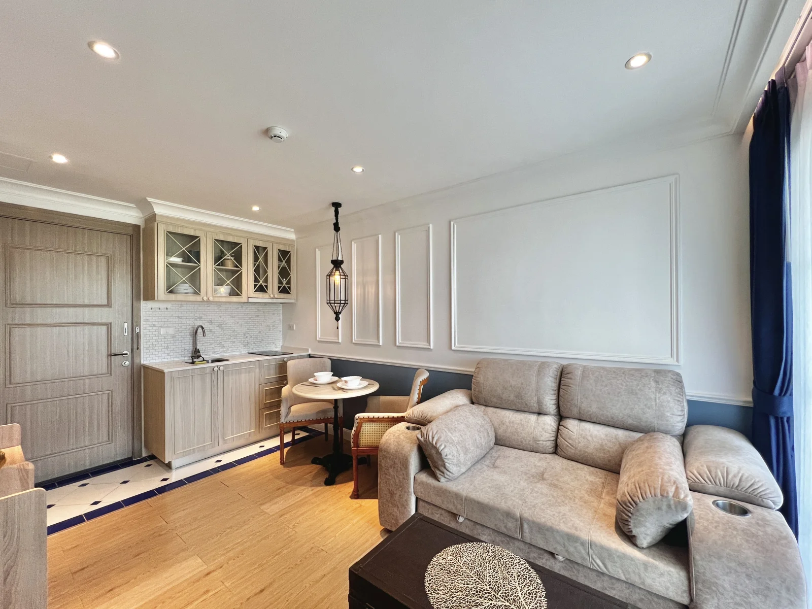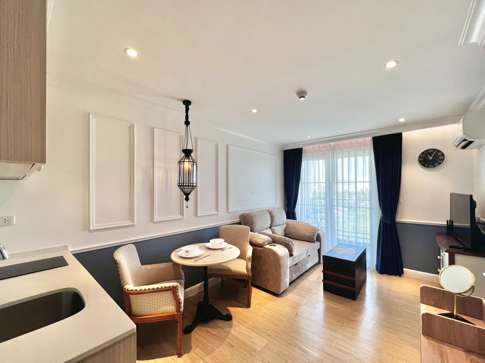 На продажу квартира с потрясающим видом на красивую территорию и бассейн, она оформлена с утонченной роскошью в мягких, радующих глаз цветах, удобной мебелью и качественной отделкой. Покупателям предоставляется пакет мебели в подарок, что позволит им избавить себя от трудоемкого процесса подбора мебели. Кухня включает в себя холодильник, раковину, встроенные кухонные шкафы, электроплиту и вытяжку. В ванной комнате проектом предусмотрены: встроенный обогреватель, душевая, умывальник и туалет. В гостевой комнате будет располагаться мягкий диван, телевизионная тумба с плоскоэкранным телевизором, кофейный столик, обеденный стол, встроенный настенный кондиционер. В спальне будет находиться двуспальная спальная кровать и матрац, прикроватный столик, элементы декора на стене, встроенный шкаф и подставка для телевизора.