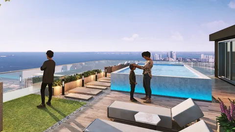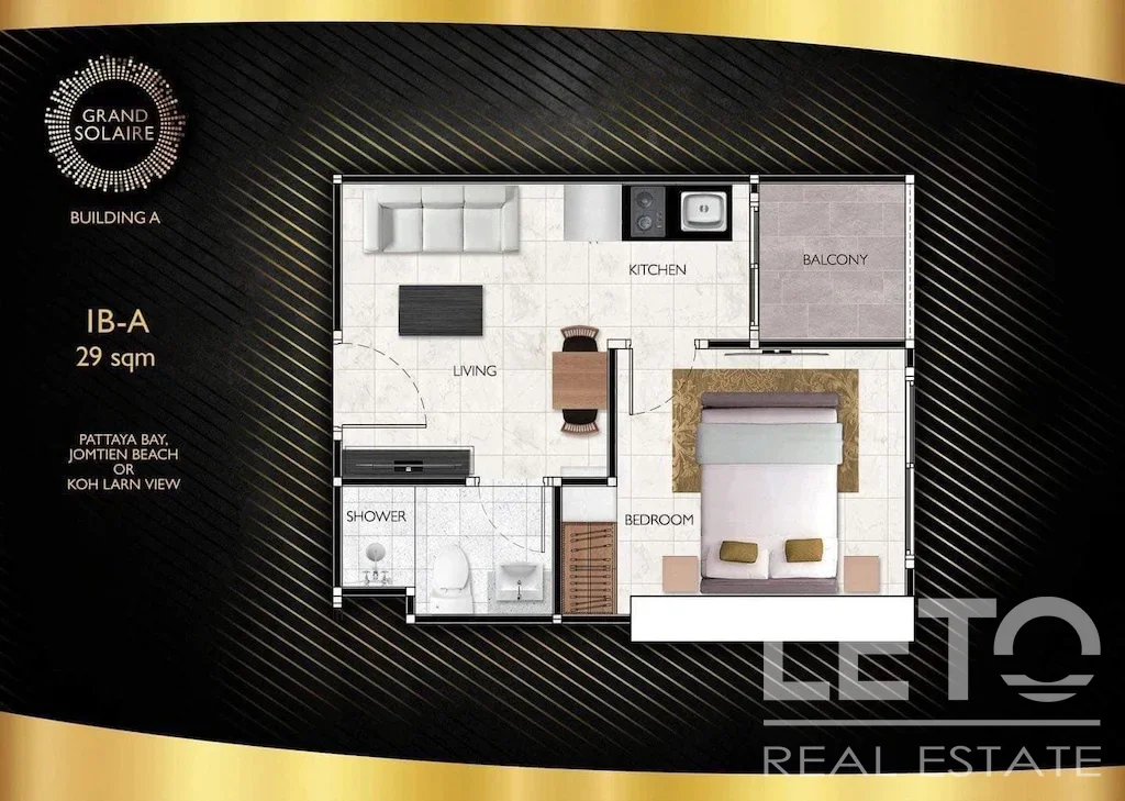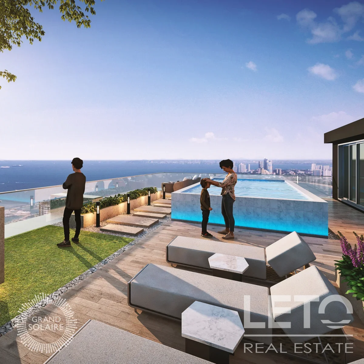 Все 2 326 предлагаемых роскошных резиденций имеют самые современные элементы дизайна интерьера, в том числе декадентскую плитку под мрамор, роскошные кухни из черного мрамора и стекла, а также первоклассную сантехнику и фурнитуру. Наслаждайтесь непревзойденной роскошью в собственном доме с электронными сантехническими системами и специально разработанными компактными и энергосберегающими кондиционерами. В дополнение к ряду кондоминиумов с 1, 2 и 3 спальнями, на верхних этажах Grand Solaire Pattaya есть ряд премиальных представительских люксов с частными бассейнами и различные дополнительные улучшения только для самых взыскательных покупателей. На вершине роскоши находится наш гигантский двухуровневый пентхаус на крыше с 5 спальнями с ванными комнатами, собственным кинотеатром и игровой комнатой — самый большой кондоминиум в Паттайской недвижимости общей площадью 1260 квадратных метров.