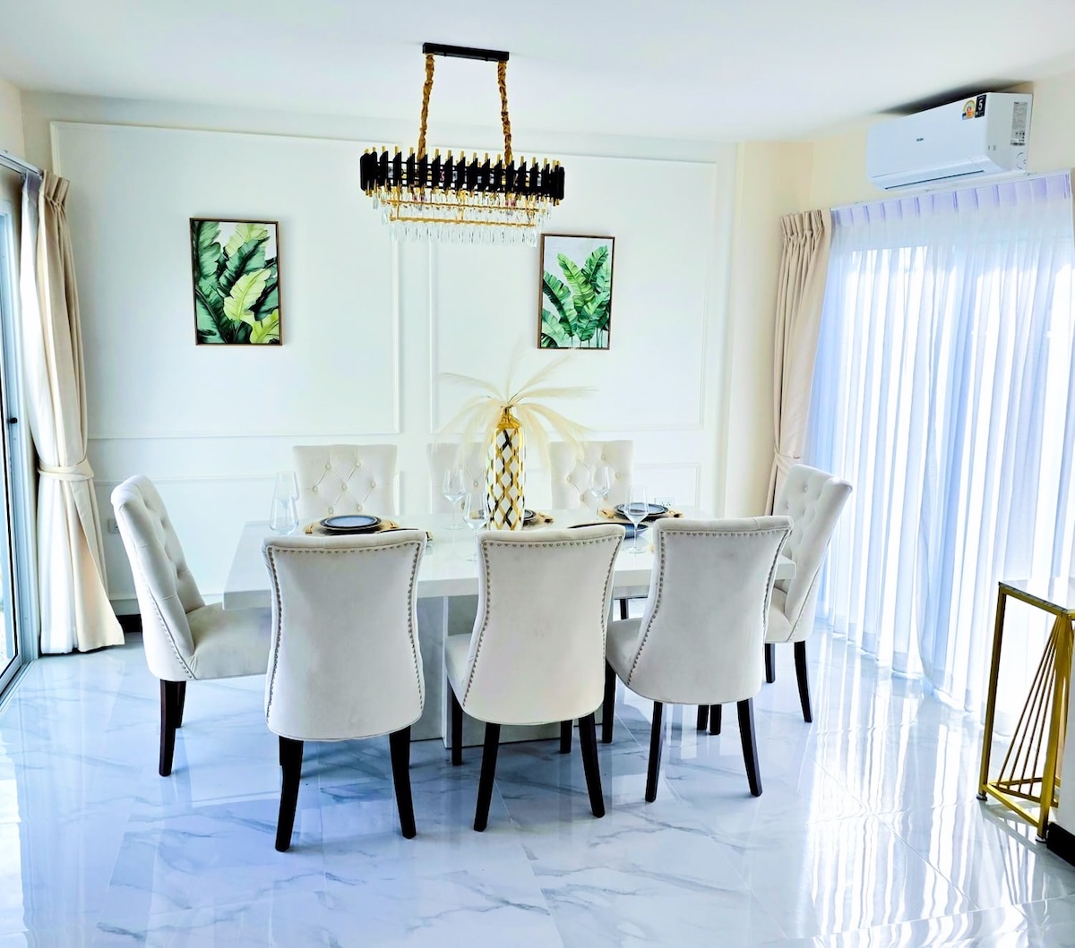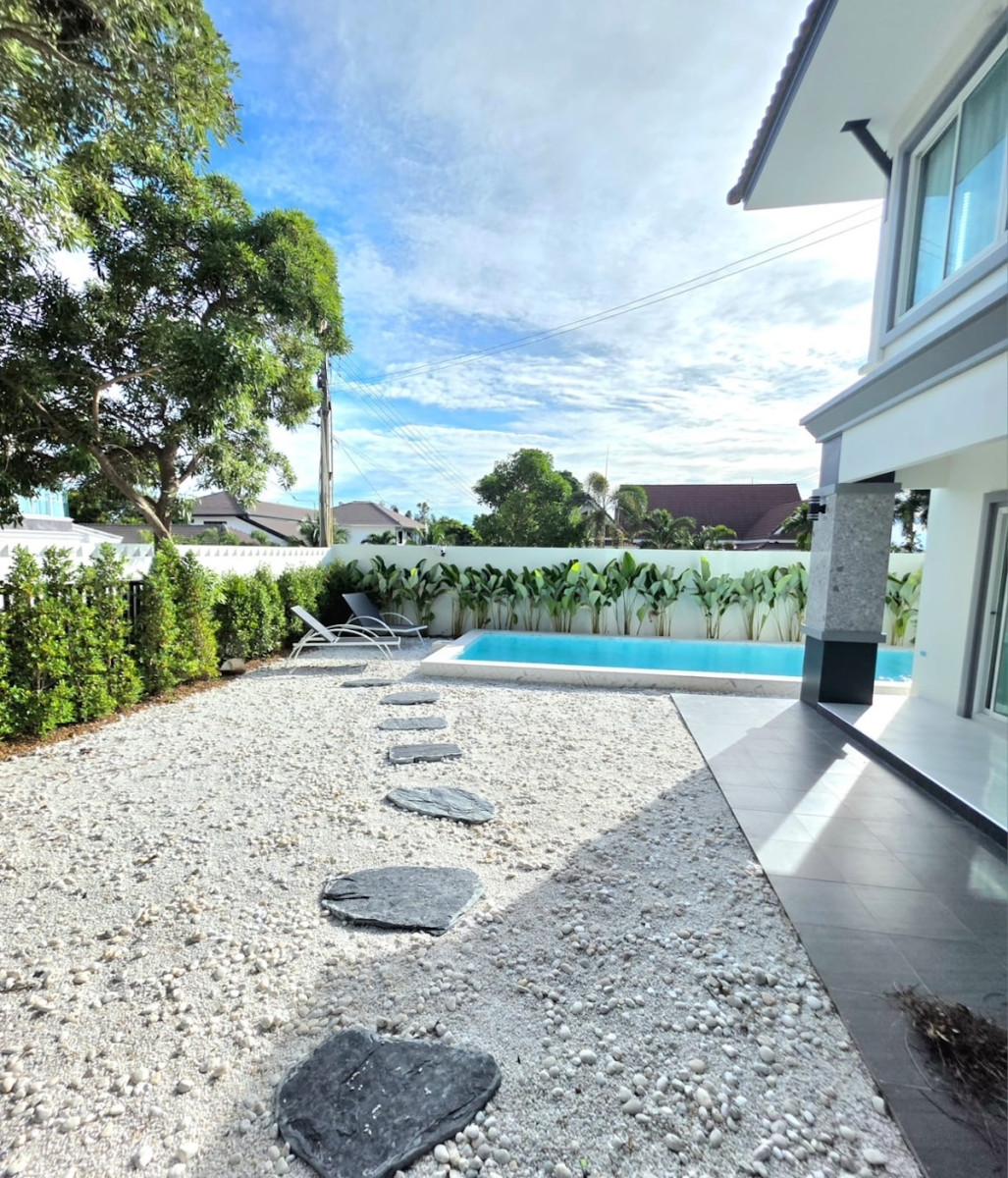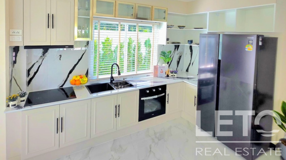 На территории есть частный бассейн 5 × 8 м, уютная гостиная, просторная европейская кухня с бытовой техникой, а также удобства для всей семьи: 6 кондиционеров и автоматические ворота.