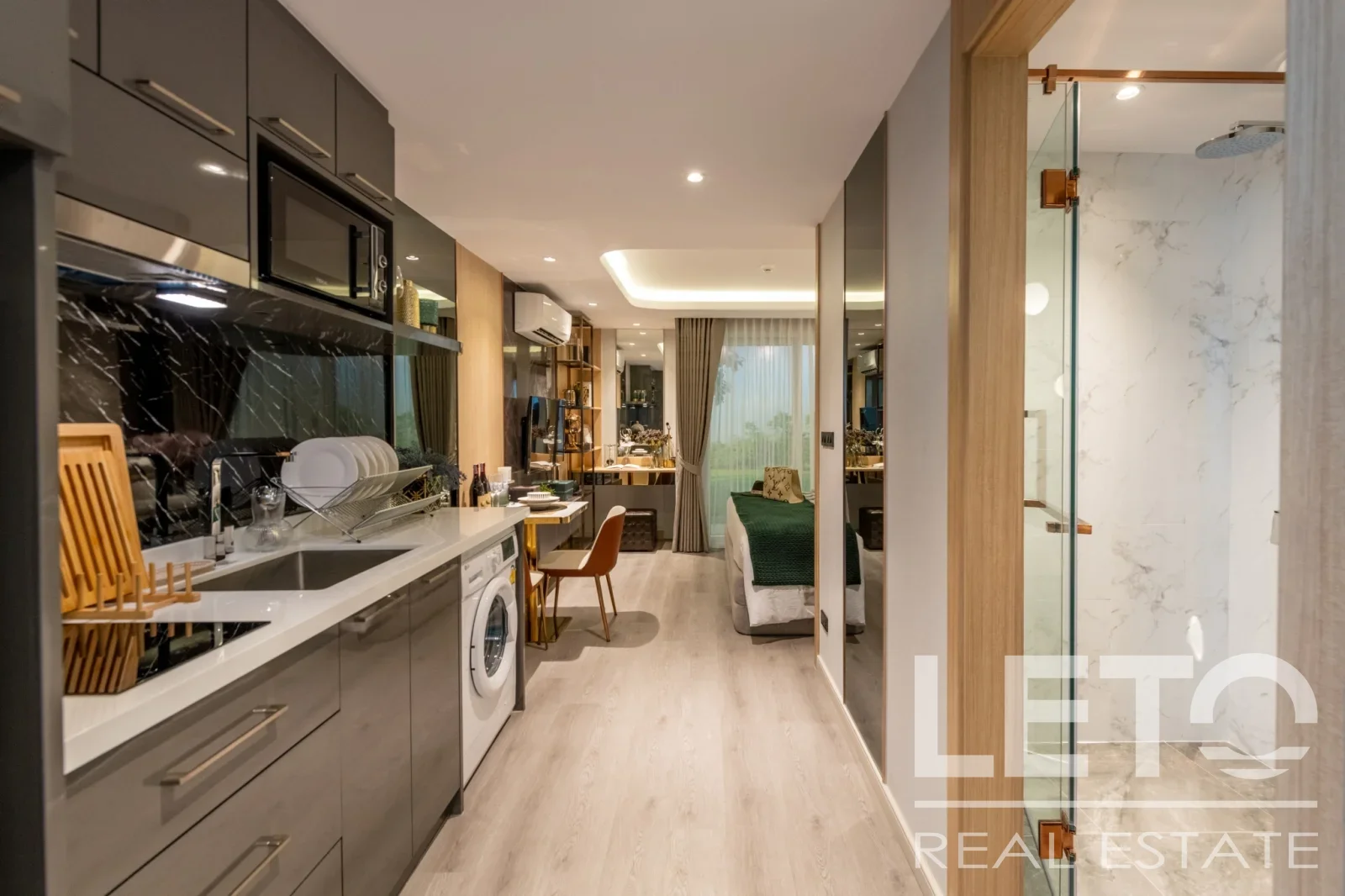 В продаже 3 типа квартир: студии, квартиры с 1 спальней и 2 спальнями. В подарок каждому клиенту полная меблировка квартиры, а также декор на стенах и комплект техники по стандартам шоу-рума.
