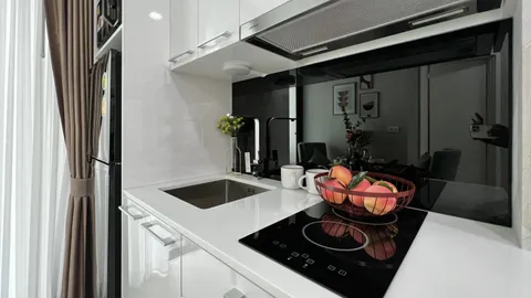 Компактные, но в то же время эргономичный планировки квартир в данном проекте дает возможность вам приобрести свою недвижимость на берегу моря по доступной цене. Вам не придется идти на компромисс в отношении качества или удобств, так как каждая квартира оборудована кухней европейского стандарта и кондиционерами. Ванные комнаты выложены плиткой от пола до потолка, и в каждой квартире также есть место, для стиральной машины. Потолочное точечное освещение обеспечивает необходимое количество света, в ваших квартирах. Все квартиры в Siam Oriental Dream продаются, с чистовой отделкой и уже готовые к заселению, а это значит, что вам просто нужно будет докупить необходимую мебель в соответствии с вашими собственными желаниями.
