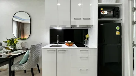 Компактные, но в то же время эргономичный планировки квартир в данном проекте дает возможность вам приобрести свою недвижимость на берегу моря по доступной цене. Вам не придется идти на компромисс в отношении качества или удобств, так как каждая квартира оборудована кухней европейского стандарта и кондиционерами. Ванные комнаты выложены плиткой от пола до потолка, и в каждой квартире также есть место, для стиральной машины. Потолочное точечное освещение обеспечивает необходимое количество света, в ваших квартирах. Все квартиры в Siam Oriental Dream продаются, с чистовой отделкой и уже готовые к заселению, а это значит, что вам просто нужно будет докупить необходимую мебель в соответствии с вашими собственными желаниями.