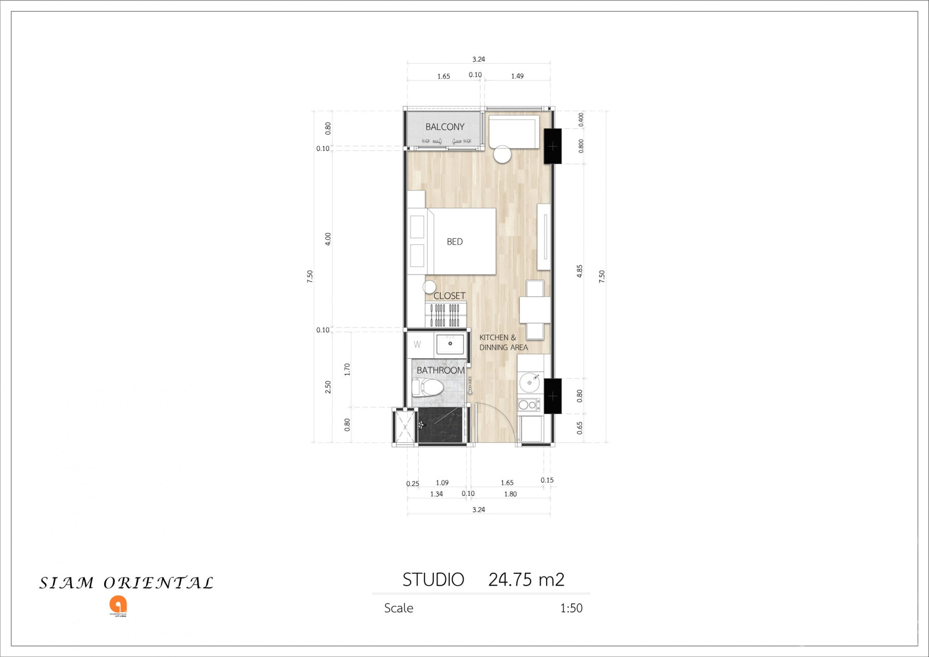 Компактные, но в то же время эргономичный планировки квартир в данном проекте дает возможность вам приобрести свою недвижимость на берегу моря по доступной цене. Вам не придется идти на компромисс в отношении качества или удобств, так как каждая квартира оборудована кухней европейского стандарта и кондиционерами. Ванные комнаты выложены плиткой от пола до потолка, и в каждой квартире также есть место, для стиральной машины. Потолочное точечное освещение обеспечивает необходимое количество света, в ваших квартирах. Все квартиры в Siam Oriental Dream продаются, с чистовой отделкой и уже готовые к заселению, а это значит, что вам просто нужно будет докупить необходимую мебель в соответствии с вашими собственными желаниями.