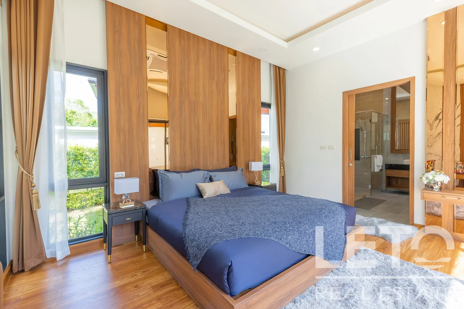 Вилла имеет две просторные спальни, причем каждую из спален можно назвать мастер-спальня, так как они оборудованы собственной ванной комнатой с установленными ванными.