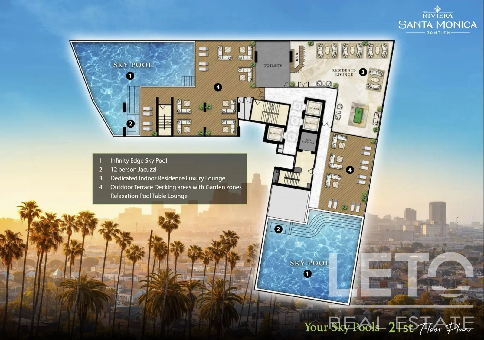 Riviera Santa Monica – это новый высотный кондоминиум в сердце Джомтьена, предлагающий 446 эксклюзивных юнитов на 34 этажах с уникальной инфраструктурой.