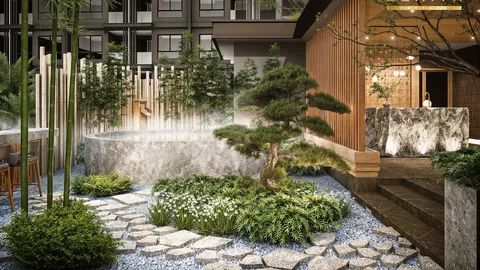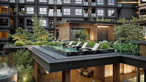 Situated on a 6-rai (approximately 9,600 sq. m) plot, the project consists of three seven-story buildings, inspired by the elegance and minimalism of Japanese aesthetics. With 582 meticulously designed apartments, the complex caters to all lifestyles, offering spacious one-bedroom residences (30+ sq. m) to luxurious two-bedroom apartments (up to 75 sq. m), including exclusive units with direct pool access.