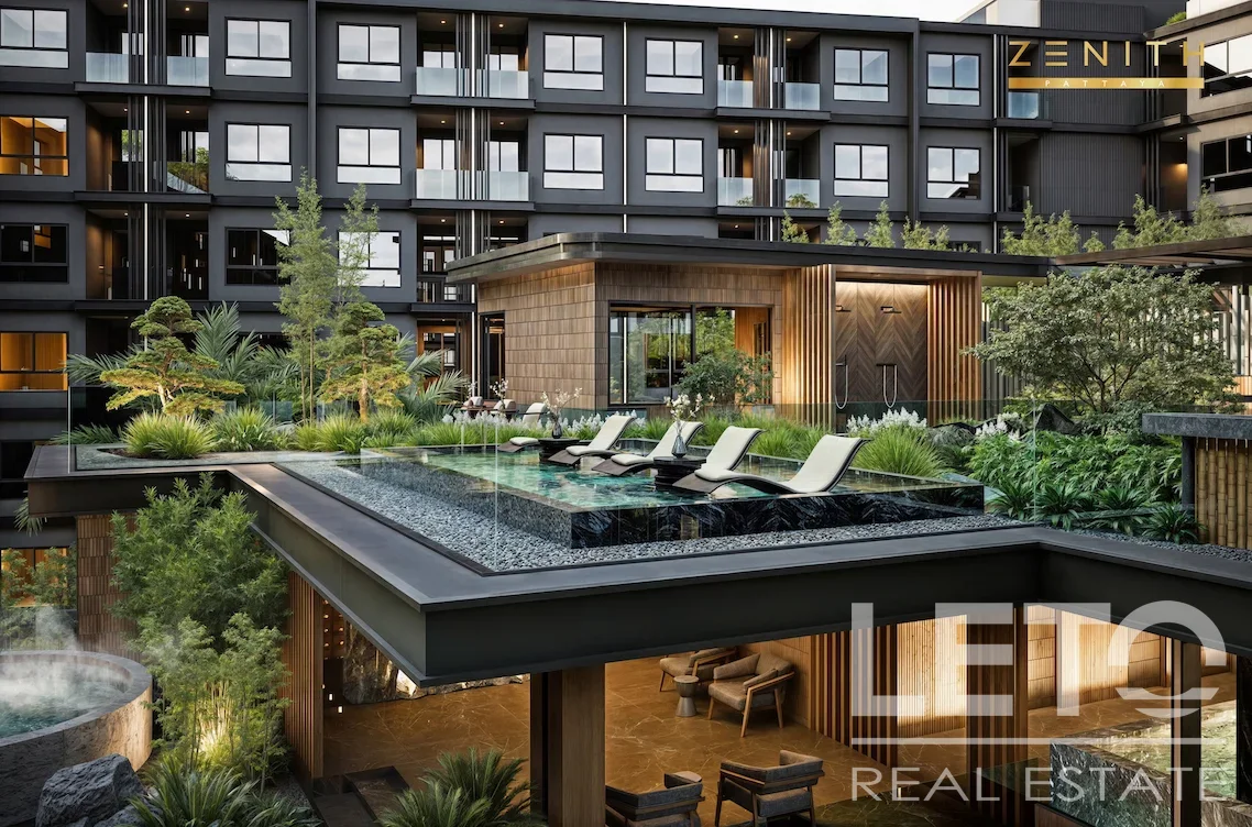Designed for ultimate comfort and well-being, Zenith Pattaya features world-class facilities, including a resort-style swimming pool, a Japanese onsen spa, and an innovative fitness complex, all surrounded by lush tropical gardens. With a prime location and proximity to key transportation hubs, residents can conveniently reach premium golf clubs and international airports such as U-Tapao in Sattahip and Suvarnabhumi in Bangkok.