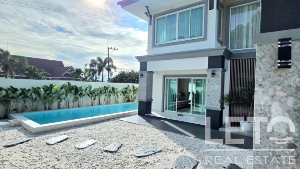 На территории есть частный бассейн 5 × 8 м, уютная гостиная, просторная европейская кухня с бытовой техникой, а также удобства для всей семьи: 6 кондиционеров и автоматические ворота.