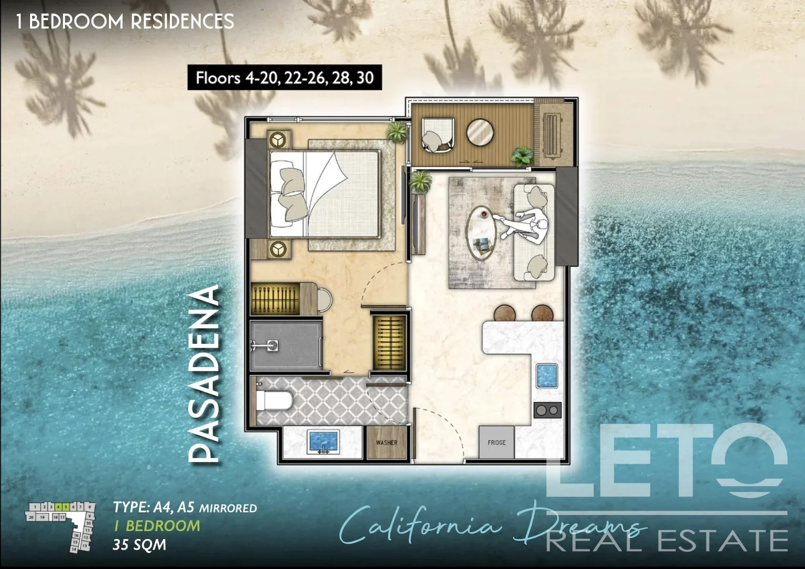 Квартира с 1 спальней, Riviera Santa Monica